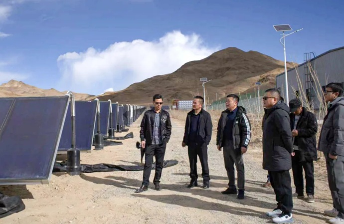 10月25日,西藏阿里地區(qū)兆源同硼礦業(yè)科技公司常務(wù)副總經(jīng)理劉曉亮赴西藏開投日土縣城集中供暖項(xiàng)目現(xiàn)場(chǎng)考察,西藏開投清潔能源供暖公司董事長(zhǎng)姚輝等陪同,雙方就高原地區(qū)太陽(yáng)能供暖技術(shù)及項(xiàng)目合作事宜進(jìn)行交流。