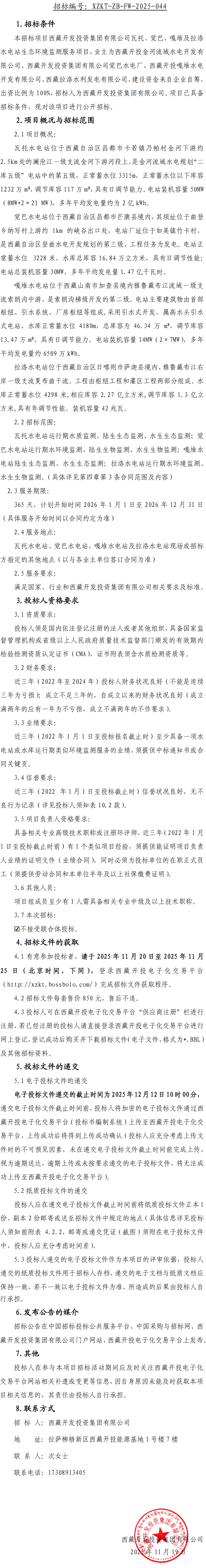 西藏開發(fā)投資集團(tuán)有限公司瓦托、覺巴、嘎堆及拉洛水電站生態(tài)環(huán)境監(jiān)測服務(wù)招標(biāo)公告
